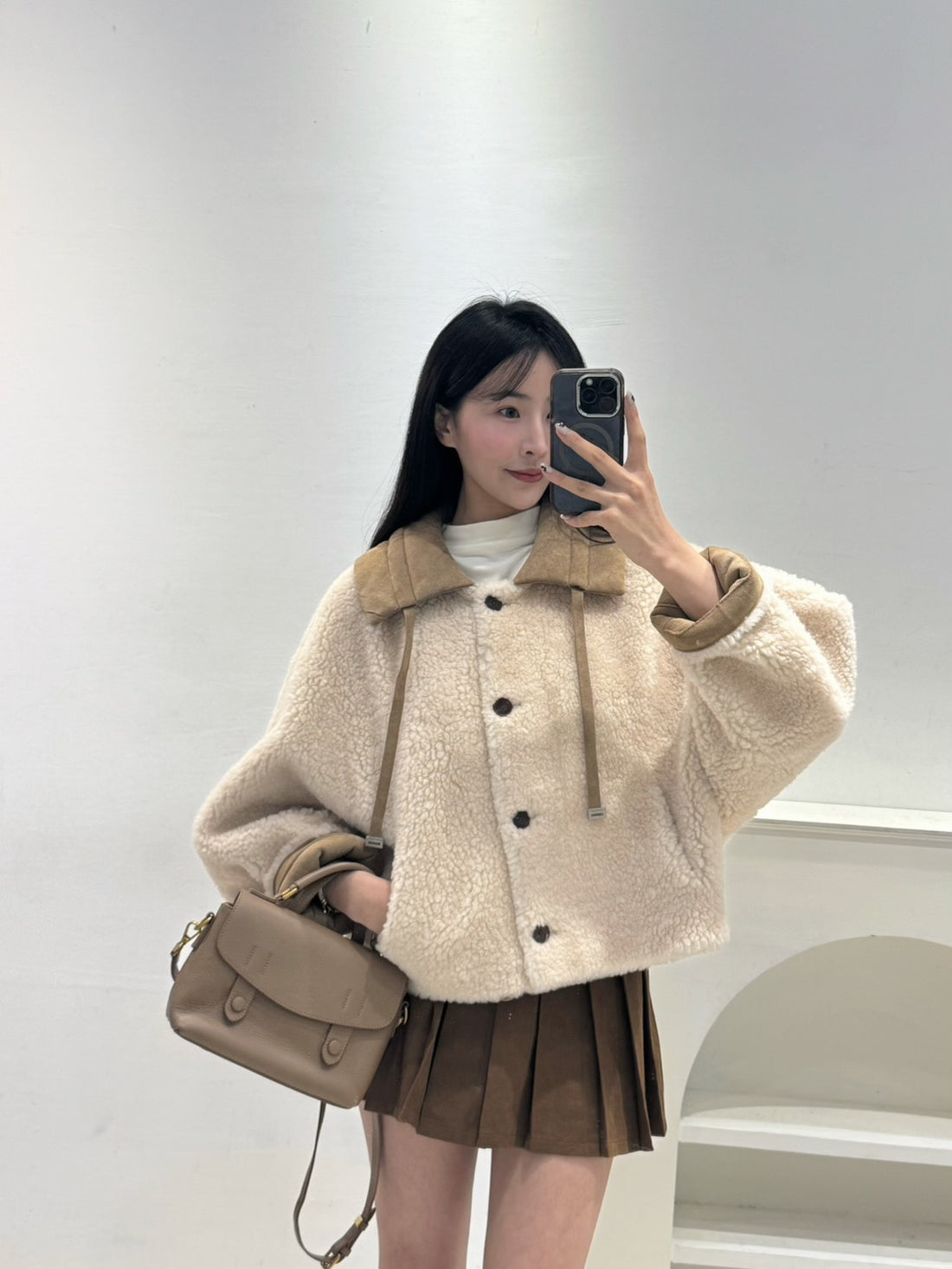 配色領QQ毛外套