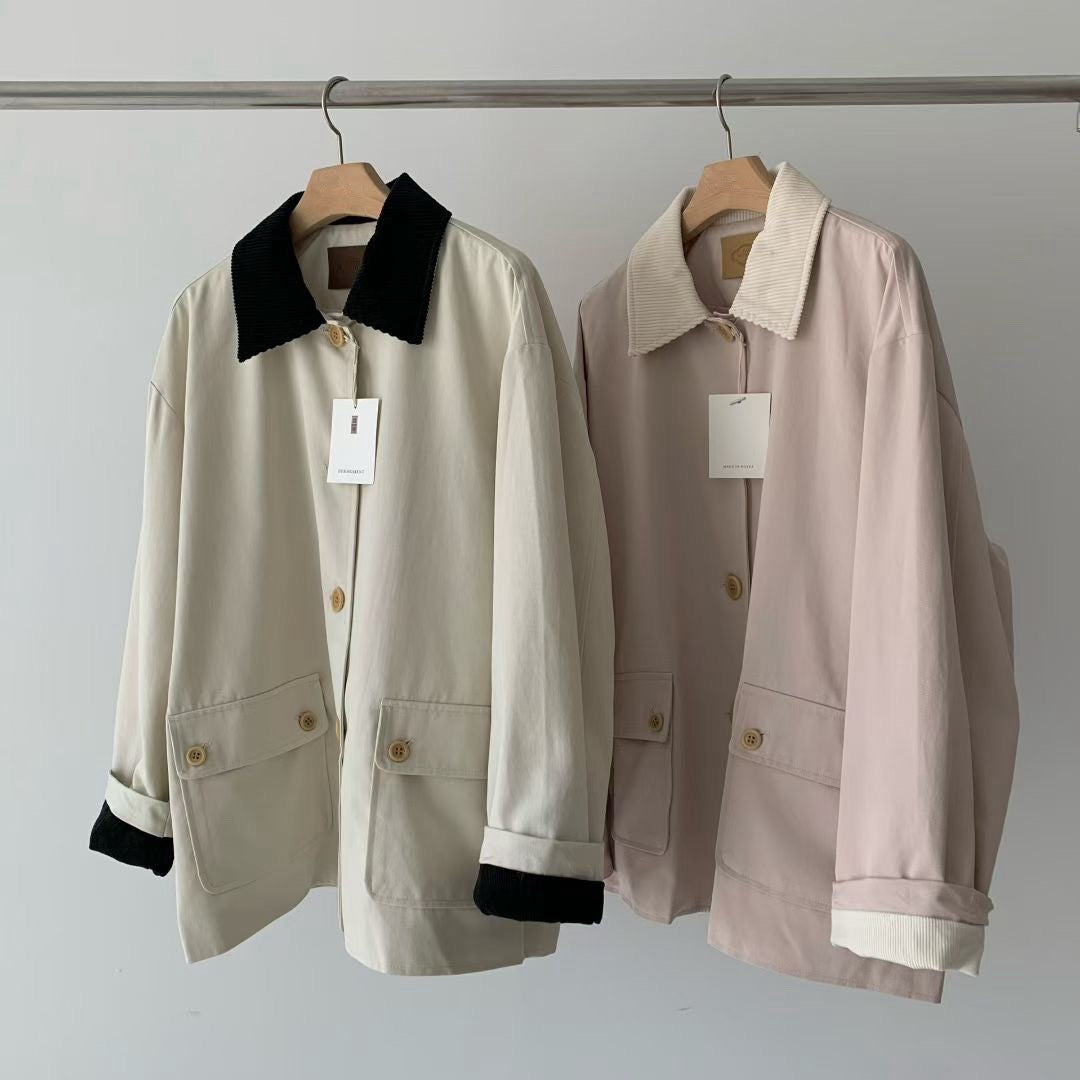 燈心絨領片風衣外套