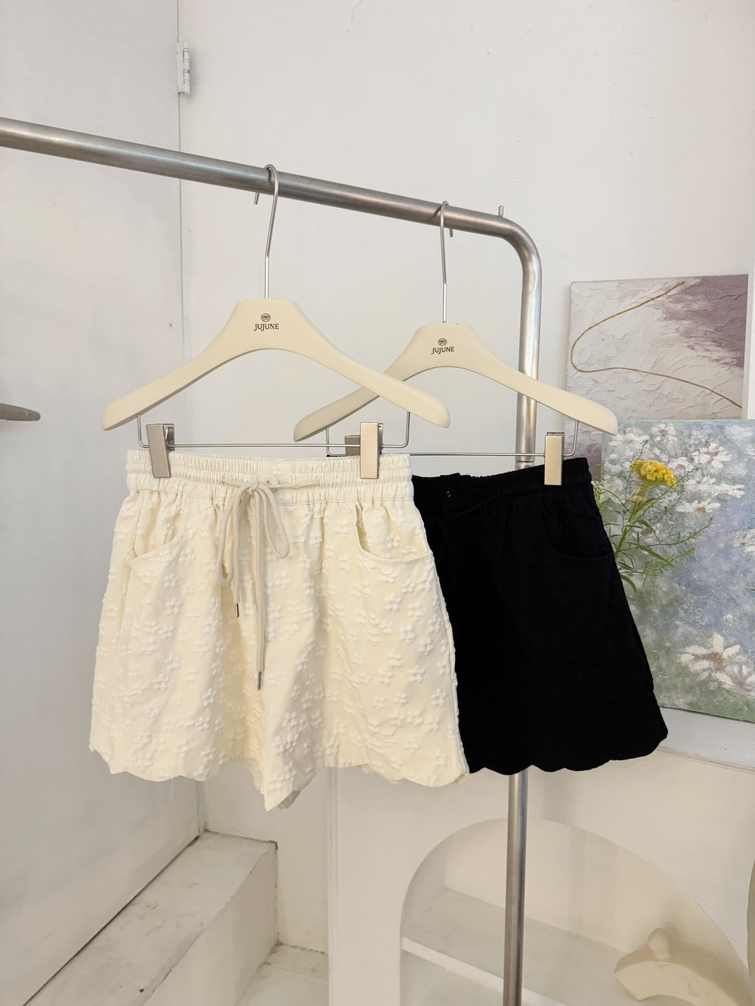 立體小花抽繩短褲