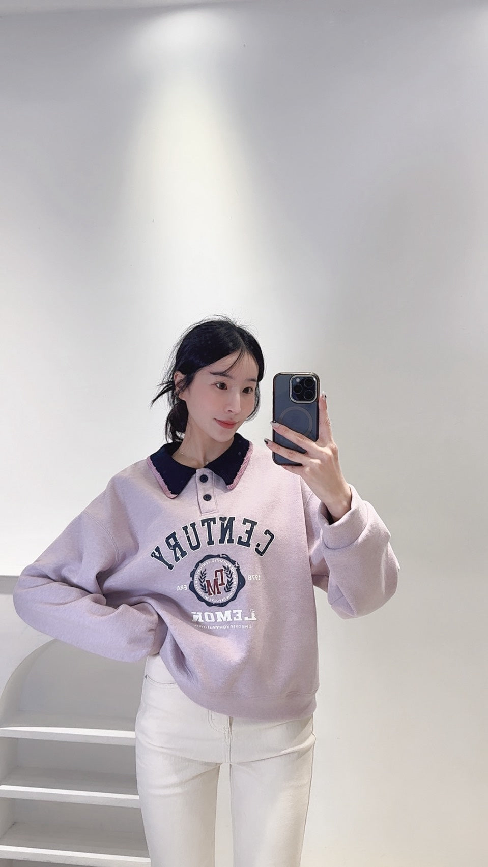 設計款配色領刷絨衛衣