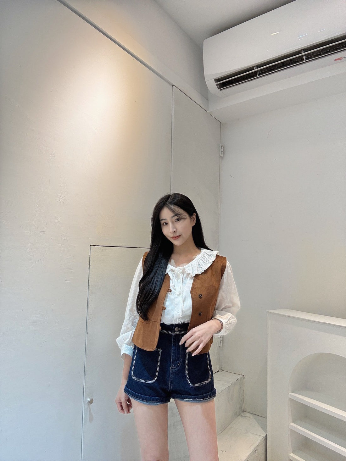 荷葉滾邊棉麻襯衫
