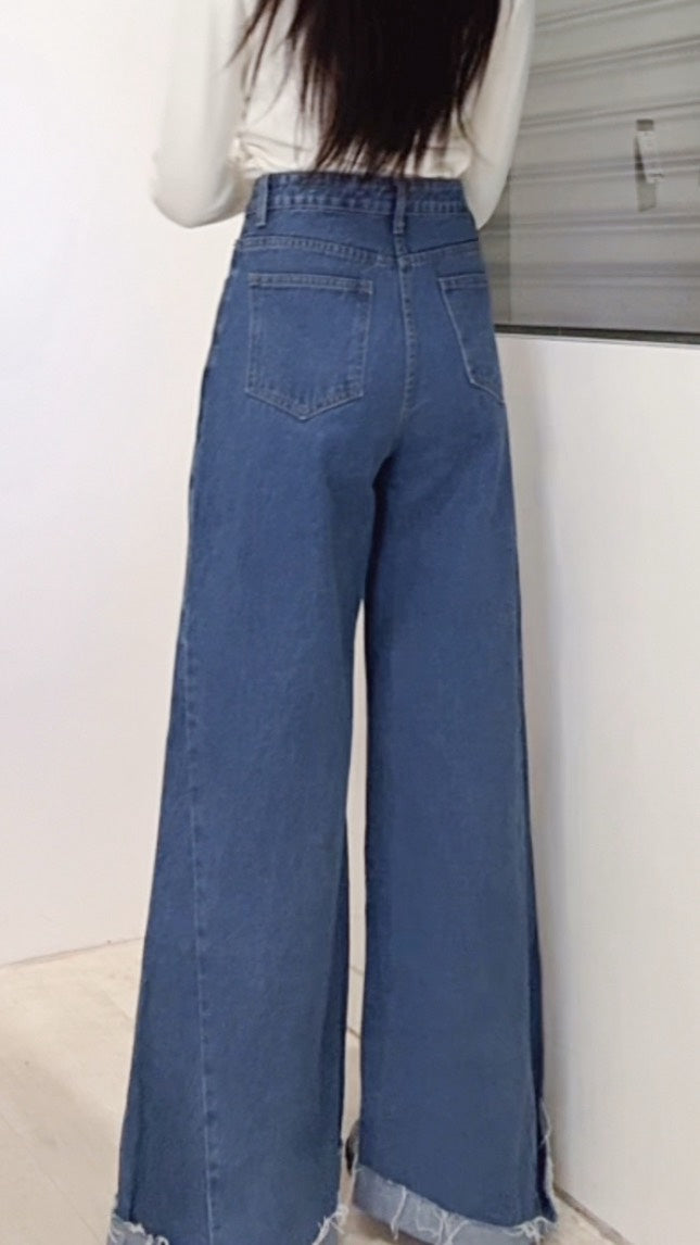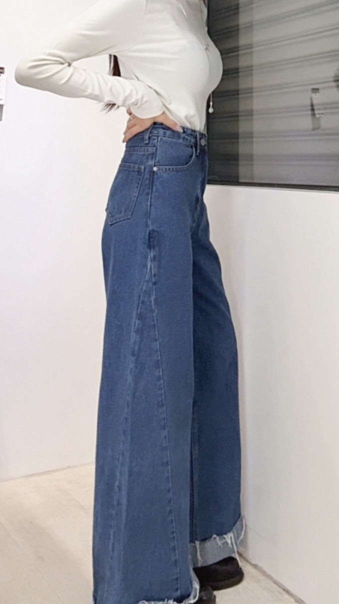 下反折高腰直筒落地褲
