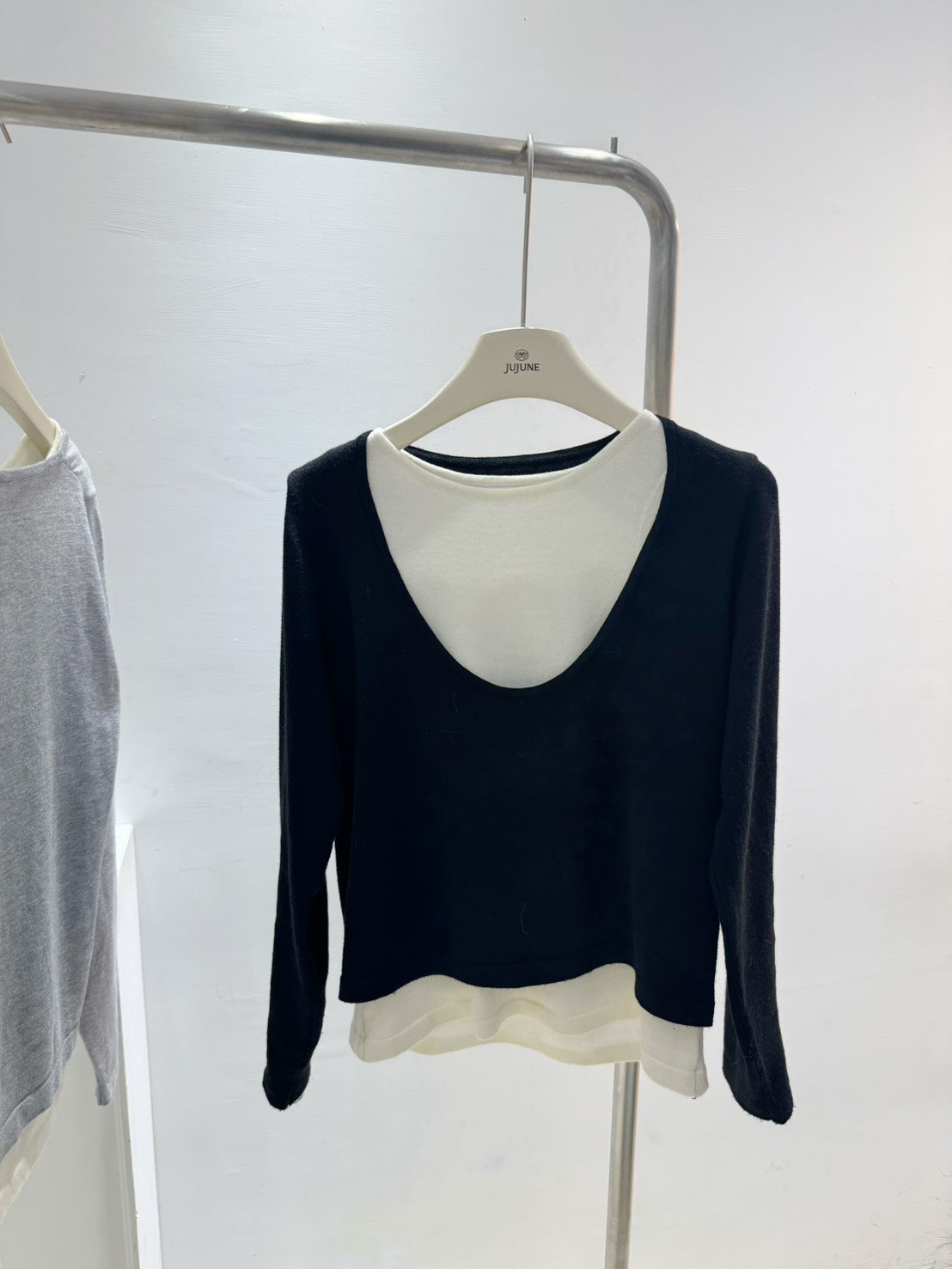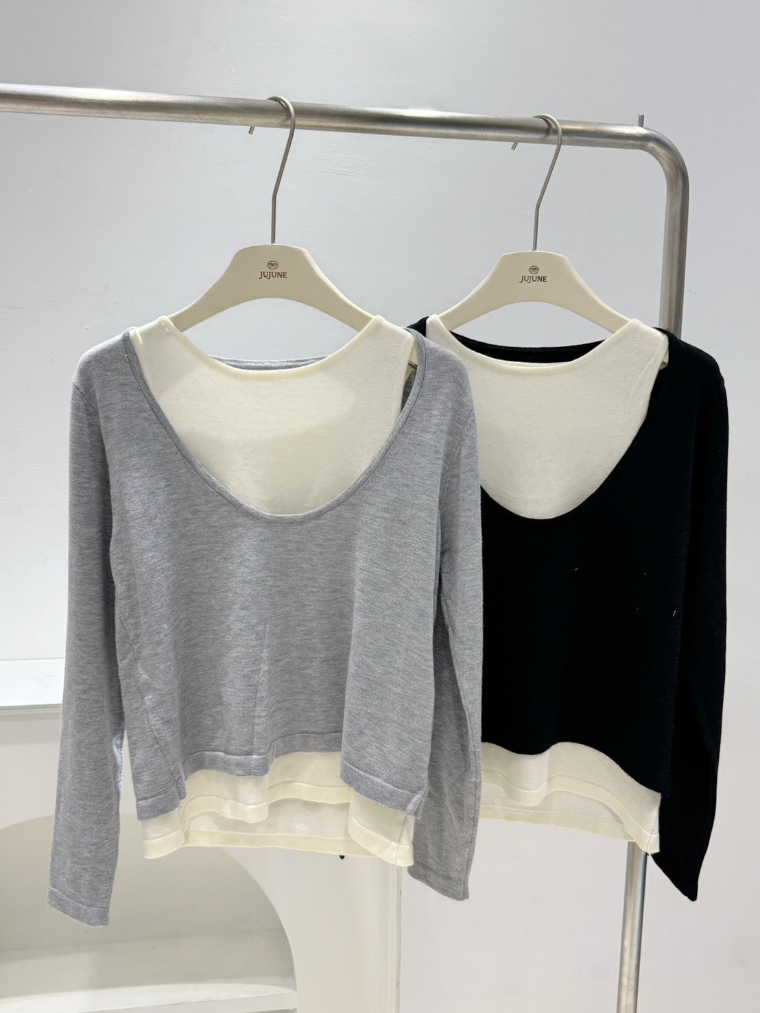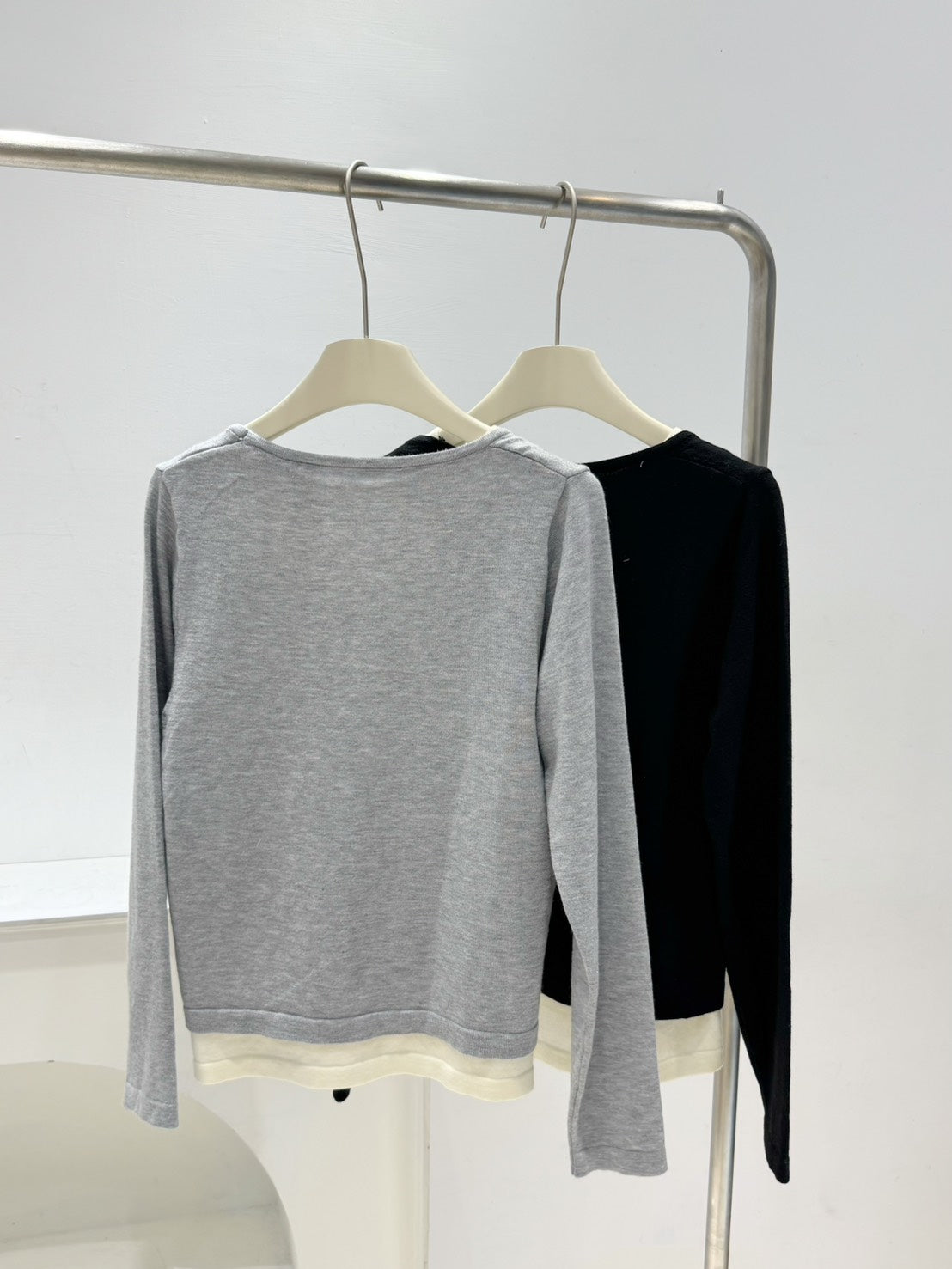 假兩件拼接圓領針織衫