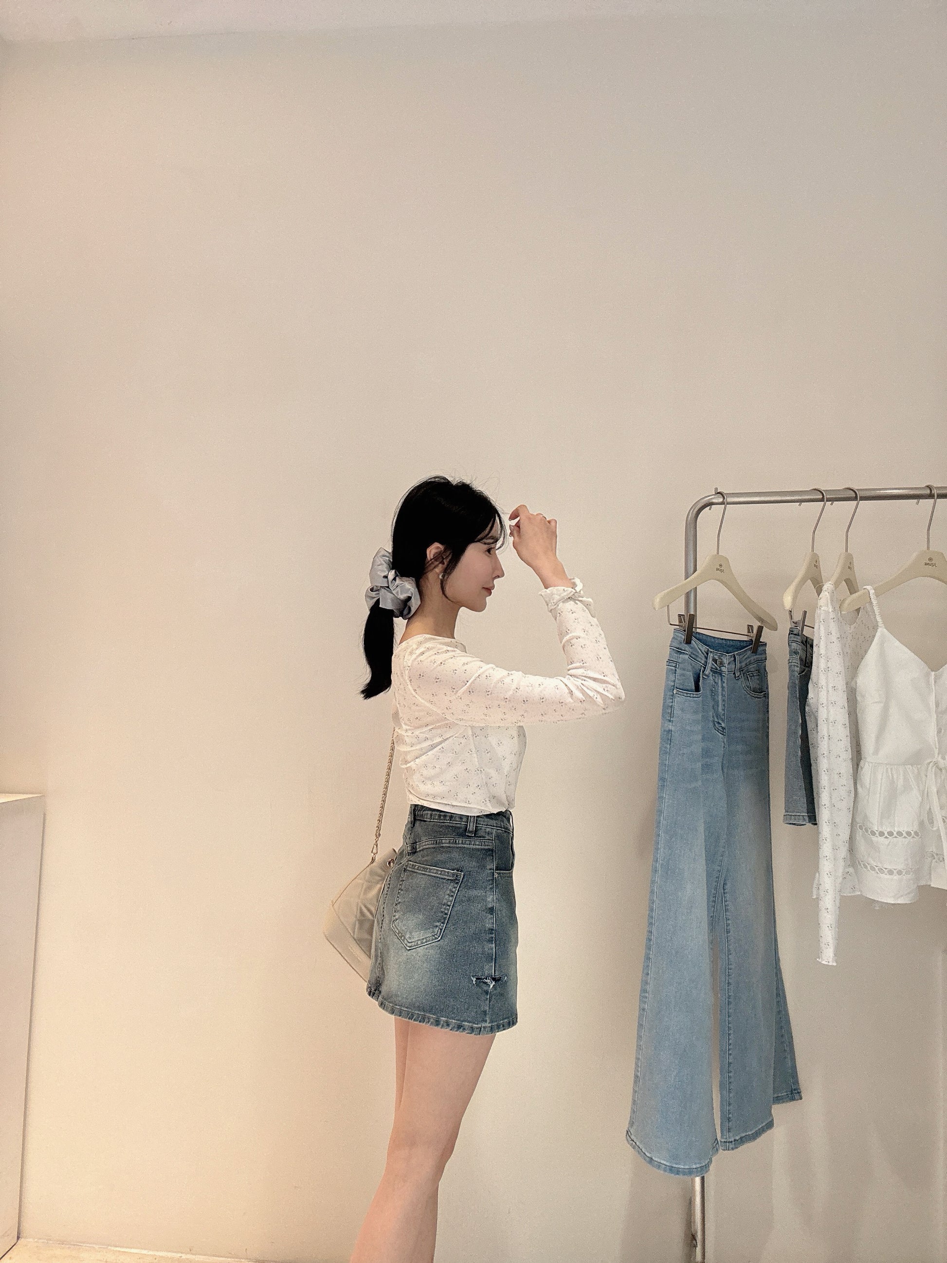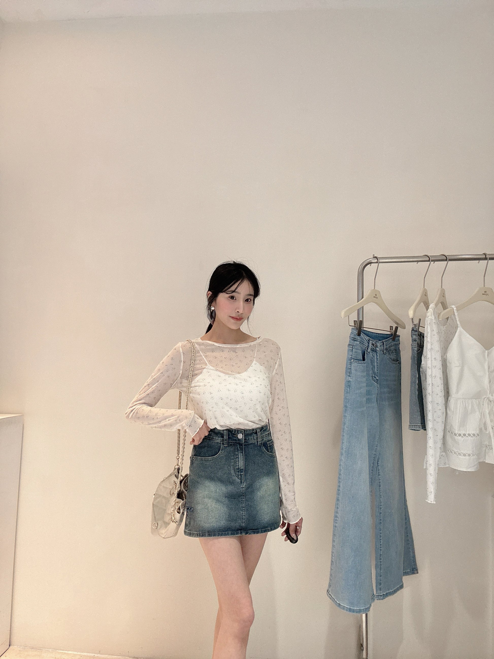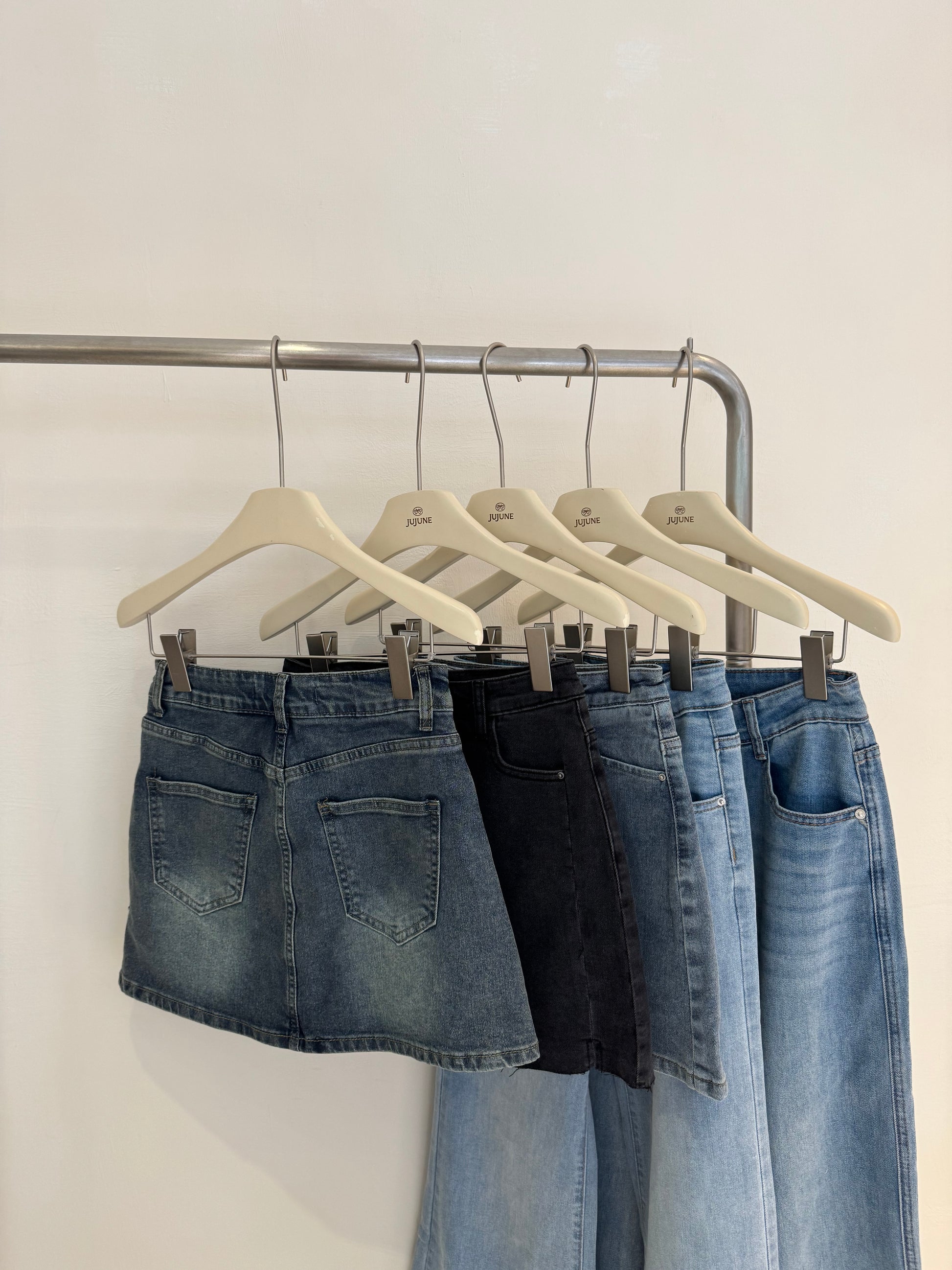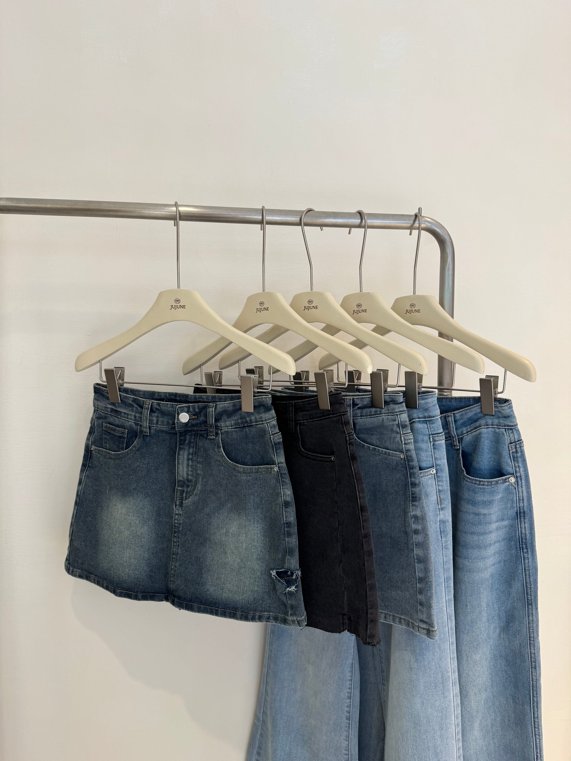 割破彈力牛仔褲裙