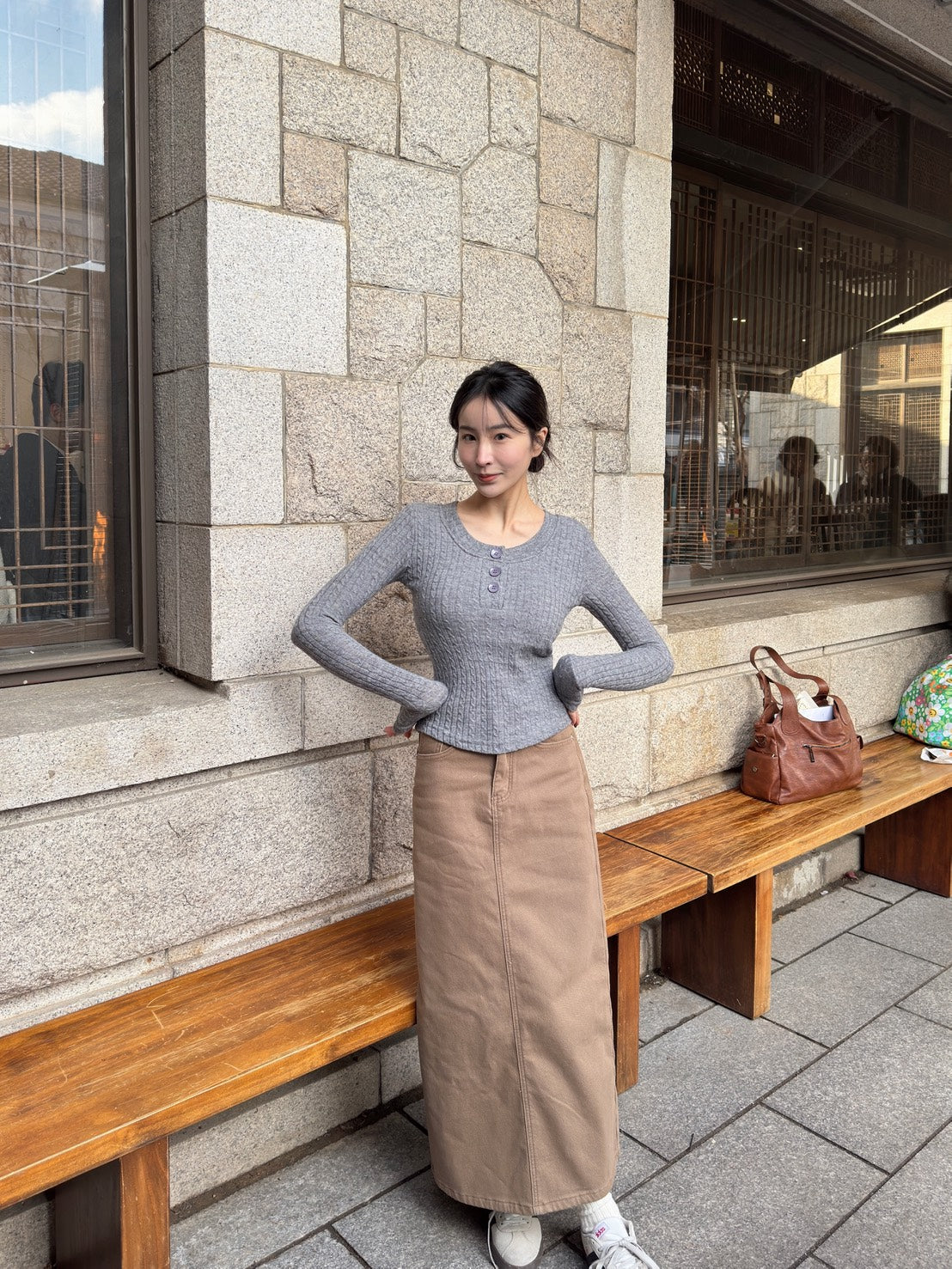 卡布奇諾刷絨開衩裙