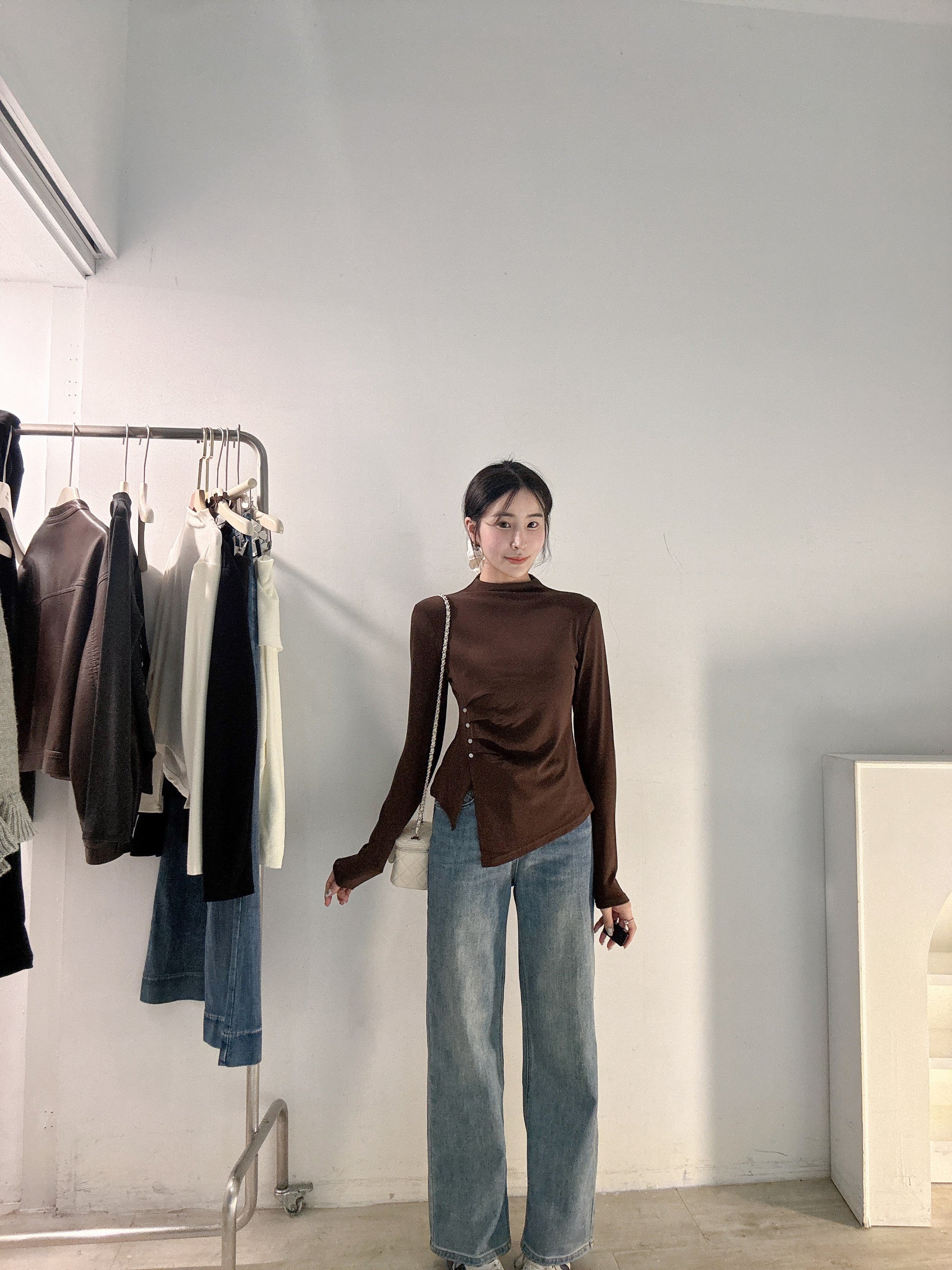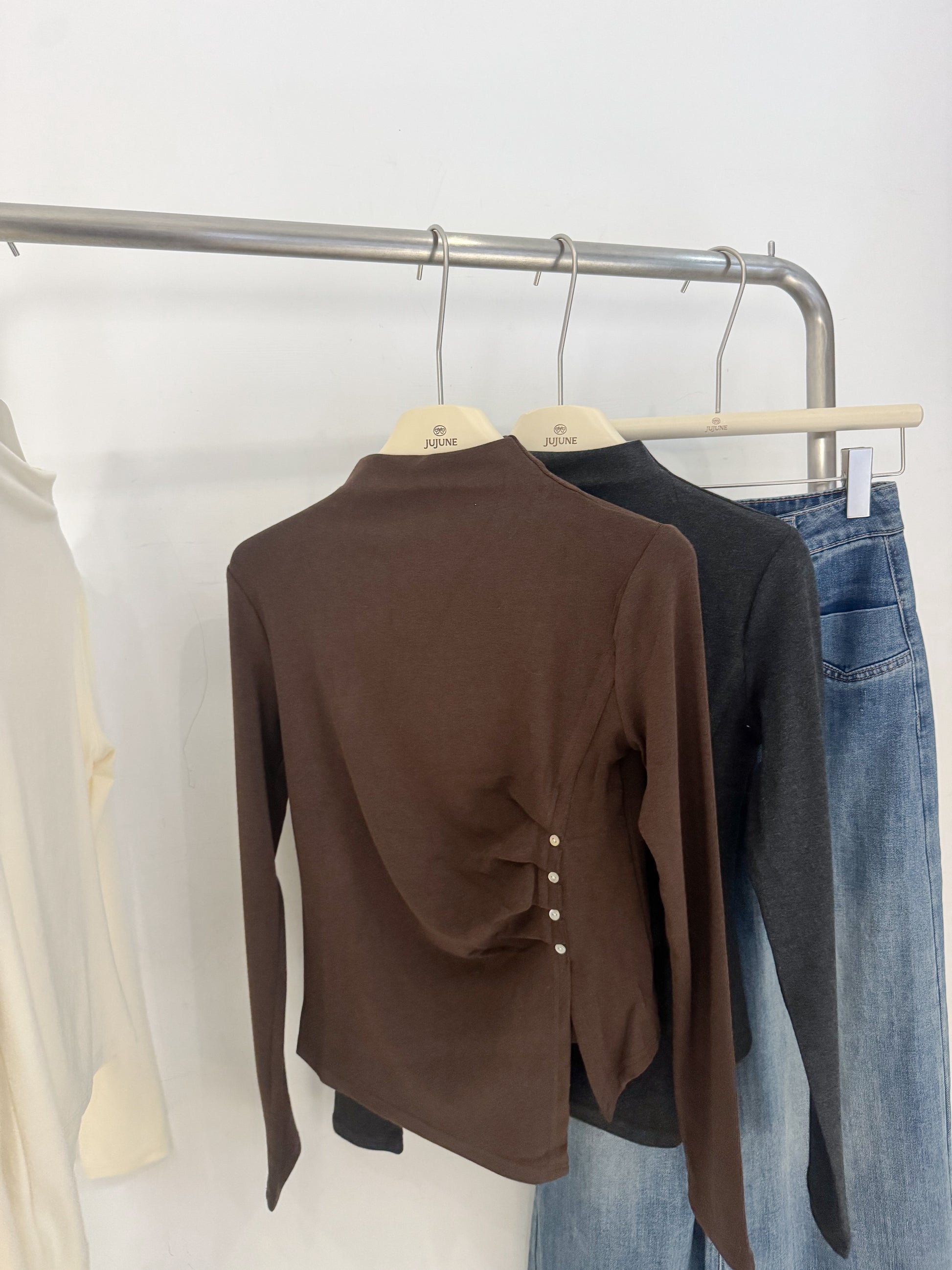 小立領抓皺彈力上衣