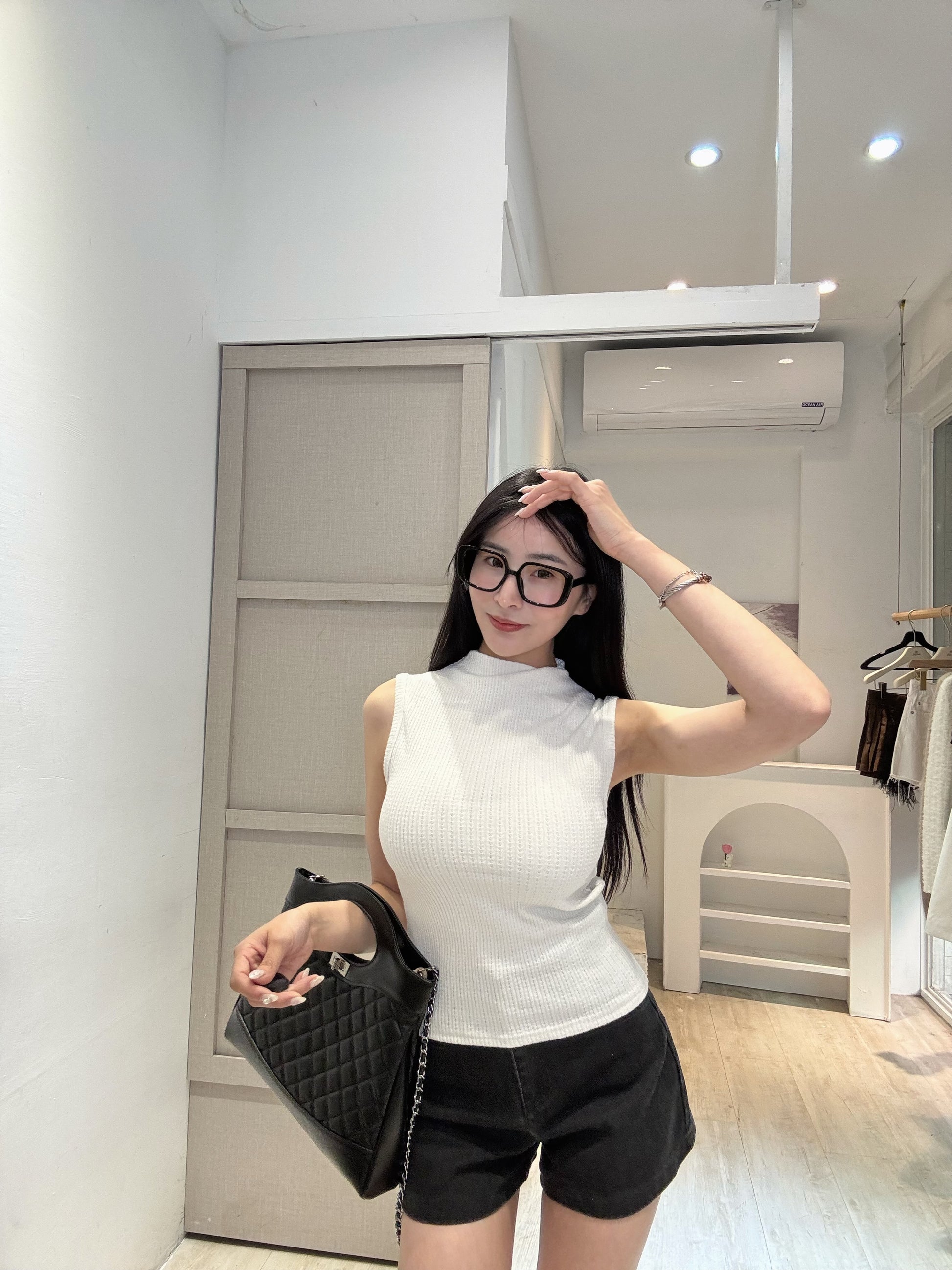 彈力立領坑條背心