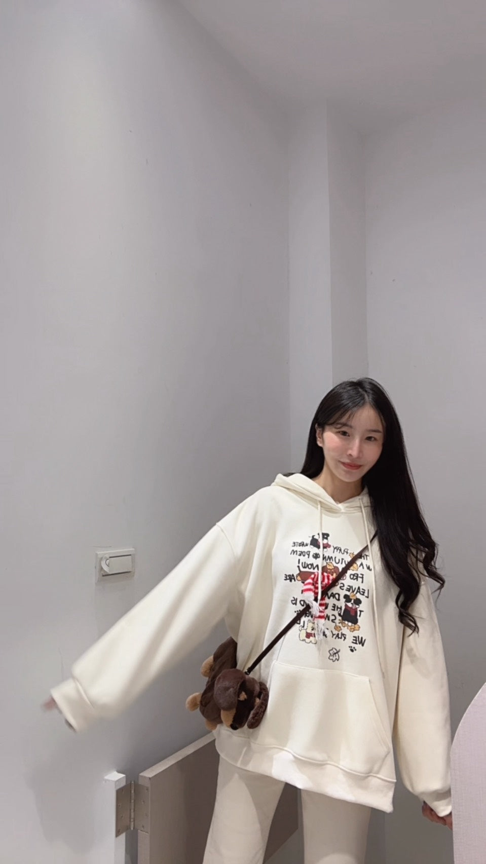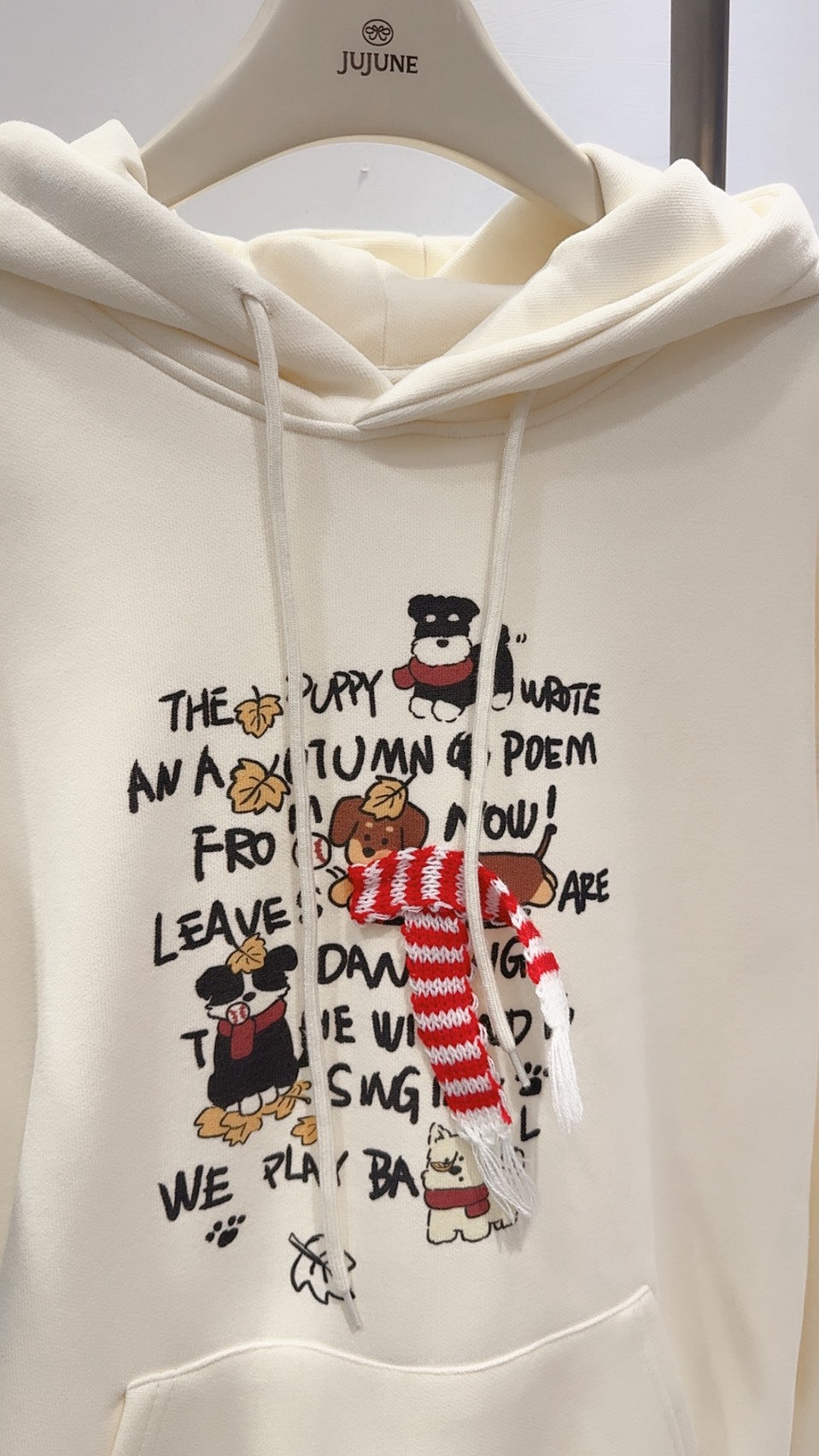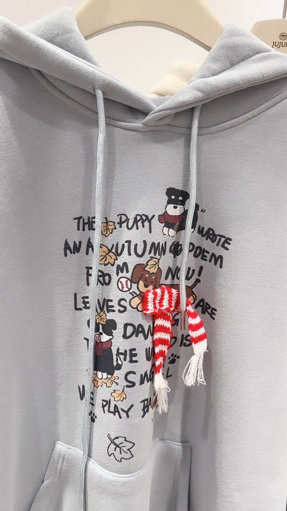 手繪狗狗刷絨連帽衛衣