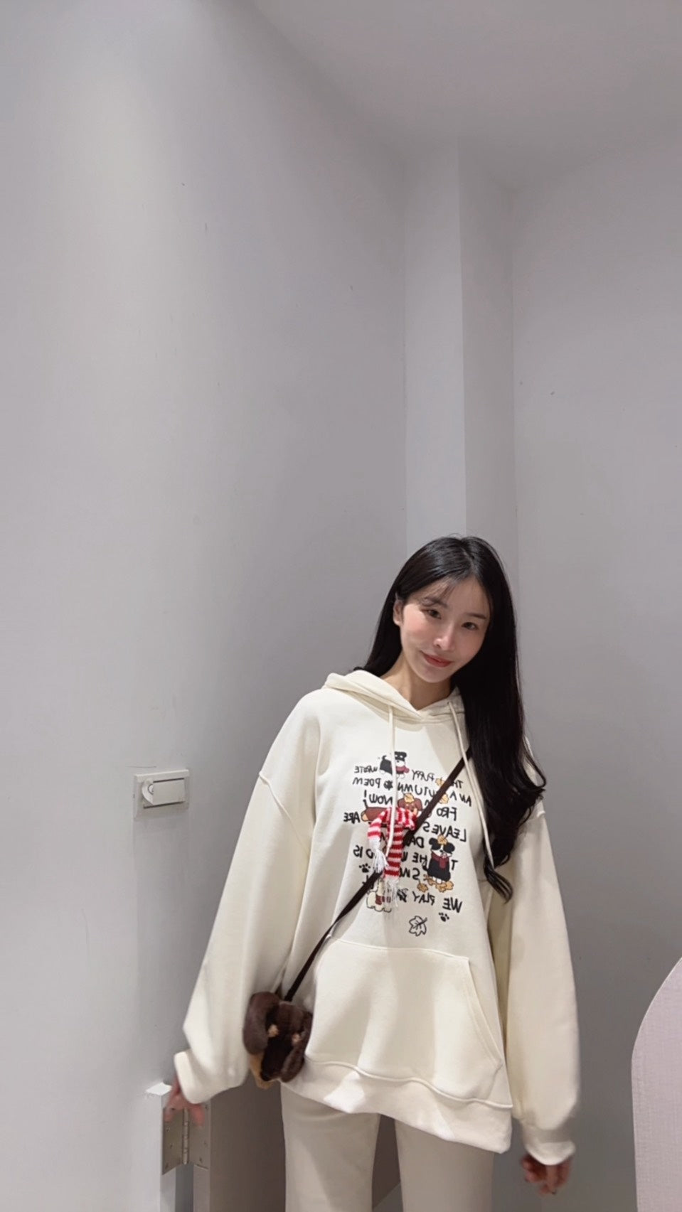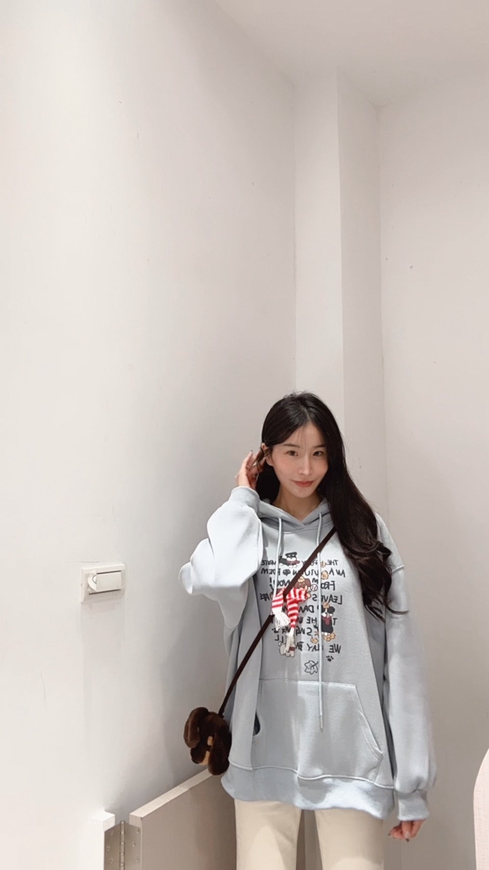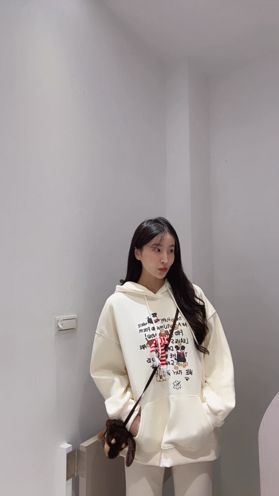 手繪狗狗刷絨連帽衛衣