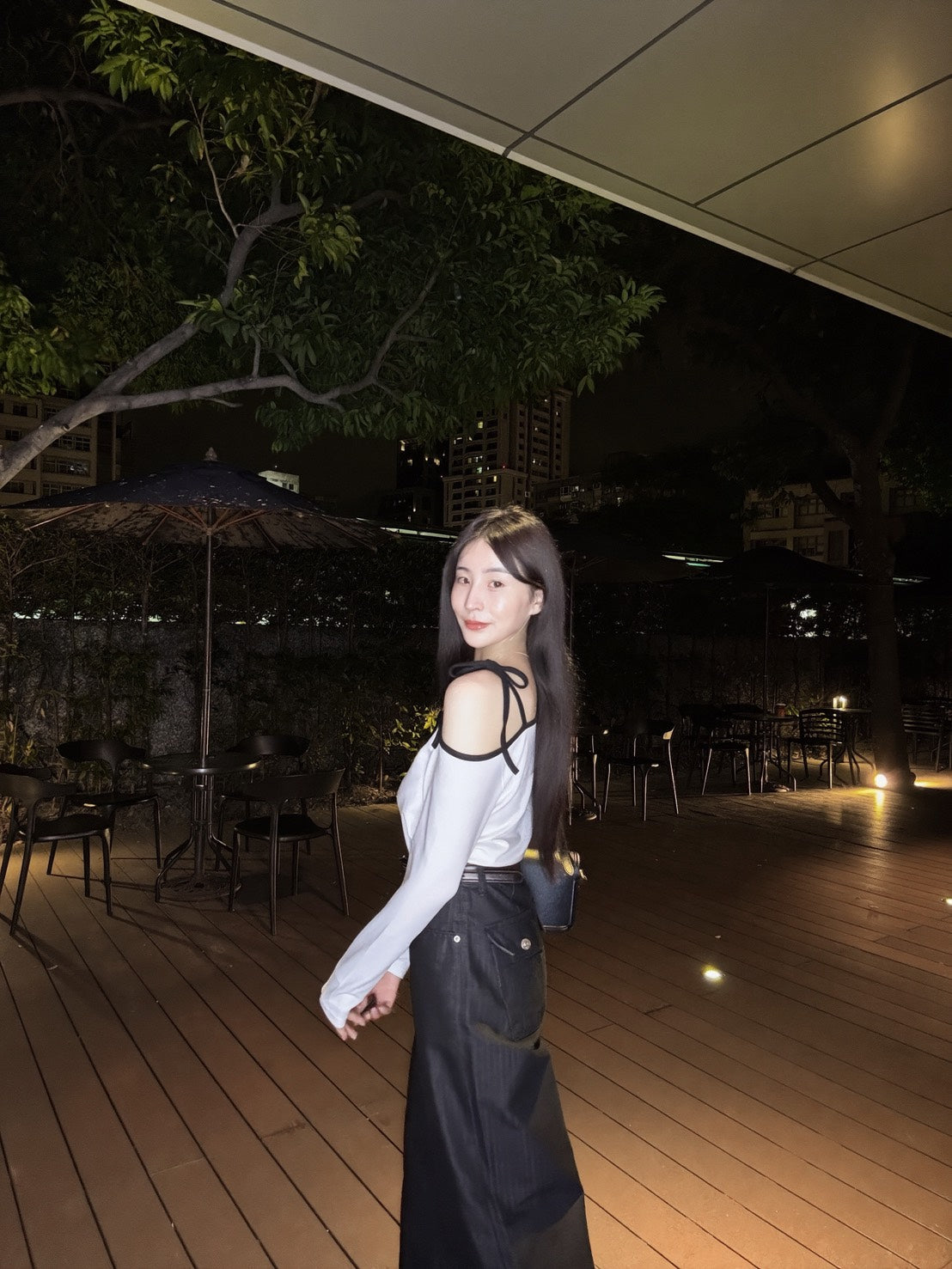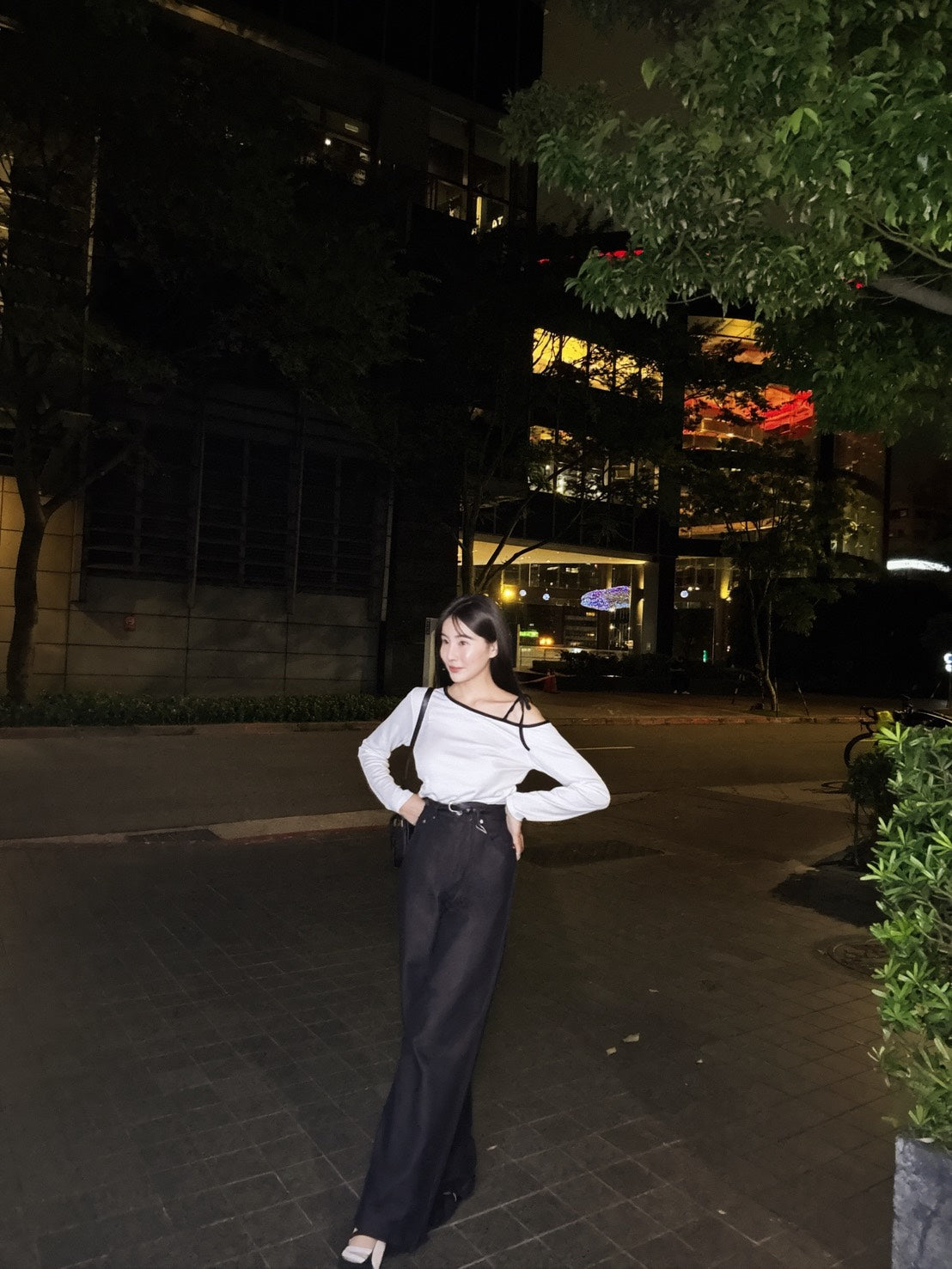 撞色滾邊綁帶上衣