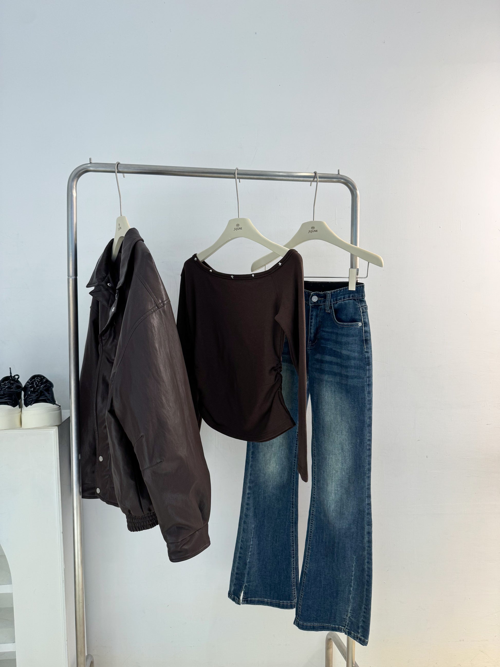 星星卯釘斜肩上衣