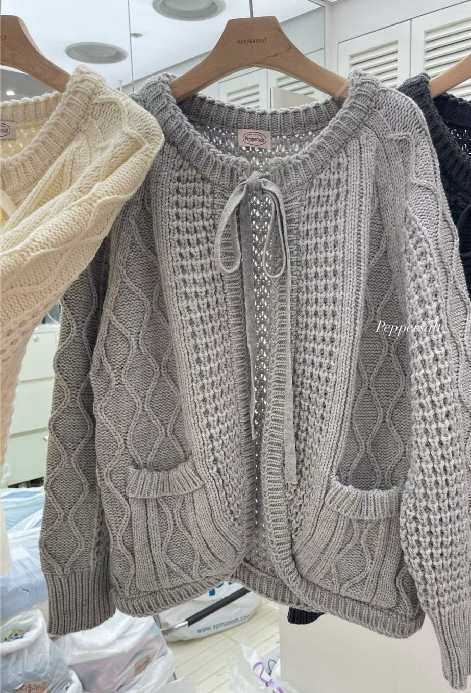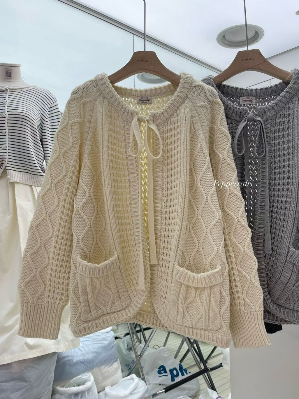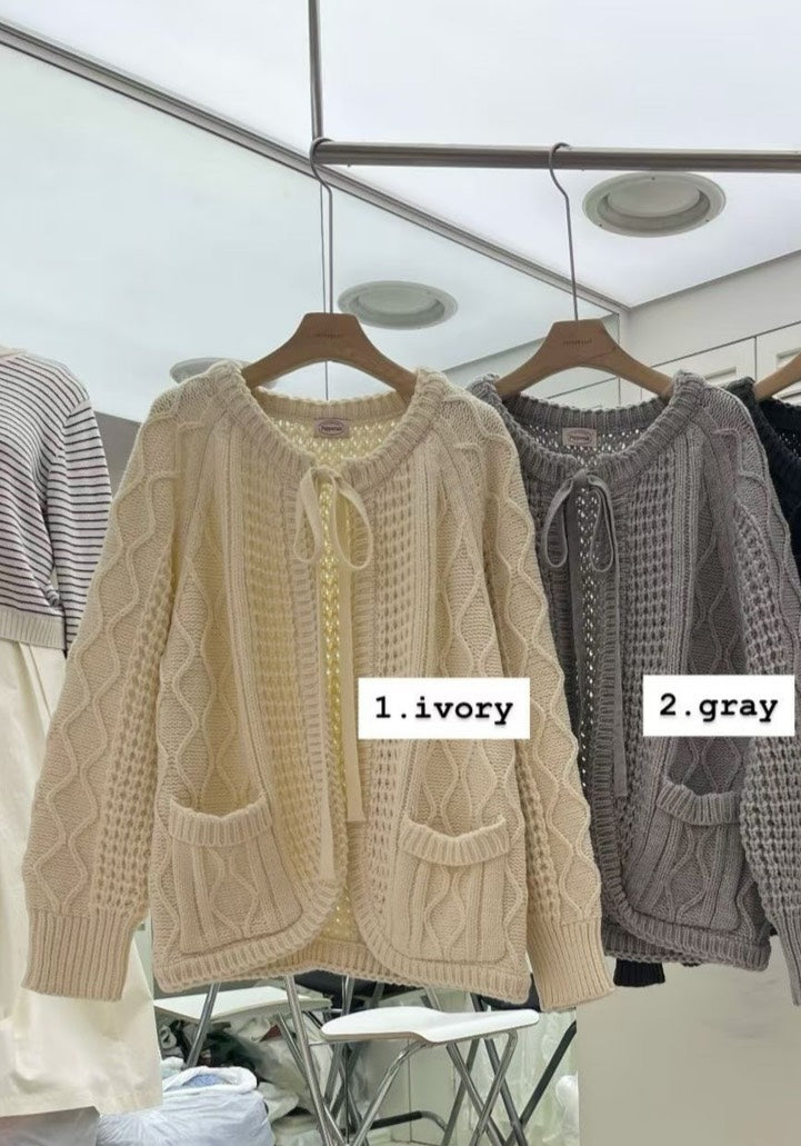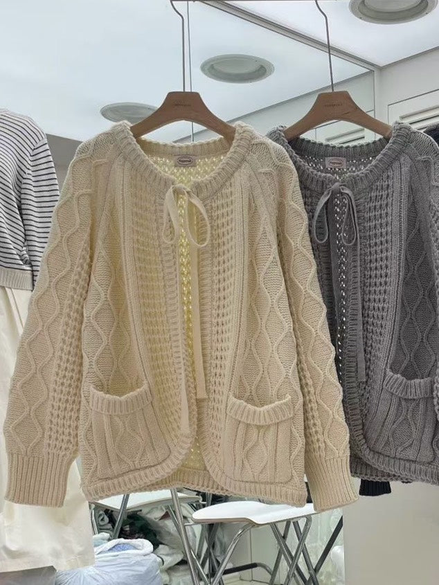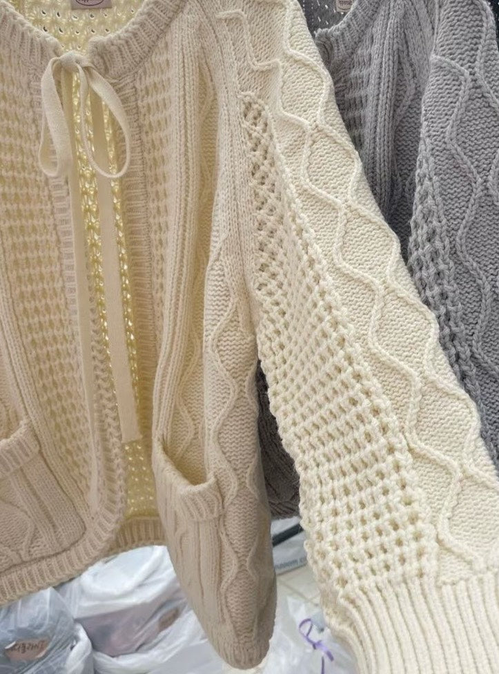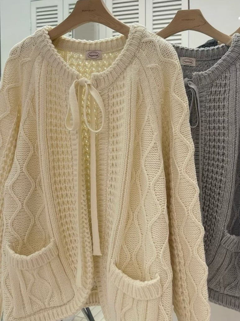 立體麻花綁帶針織外套