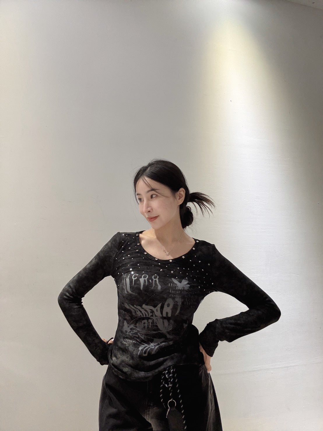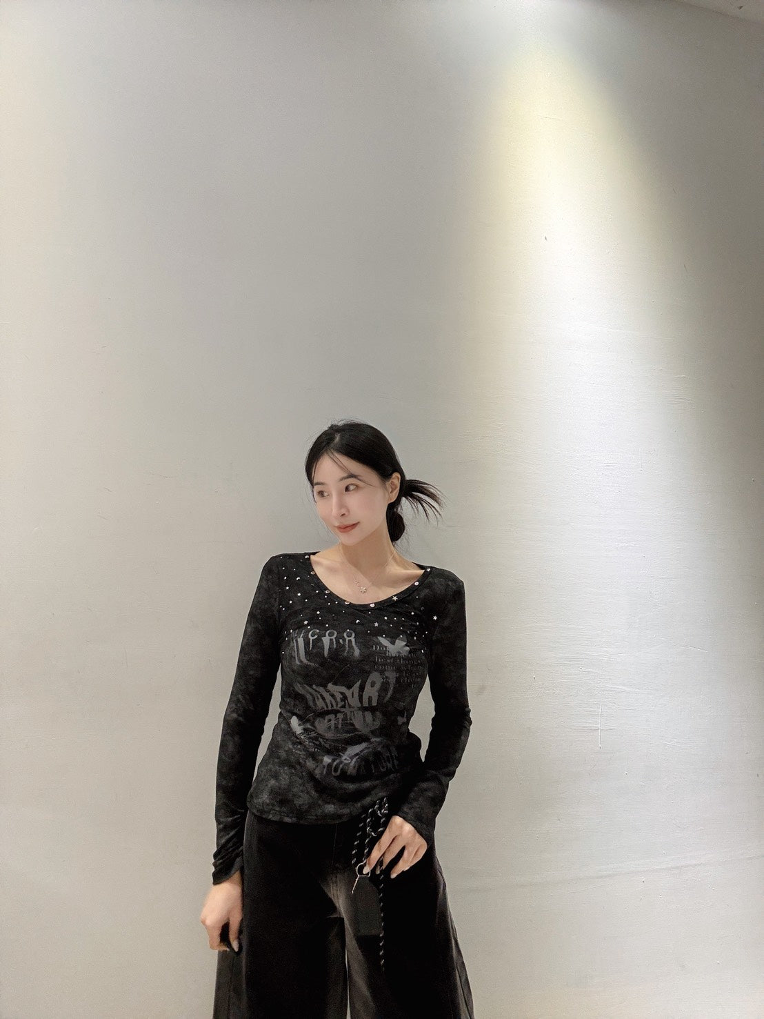 網紗拼接彈力上衣