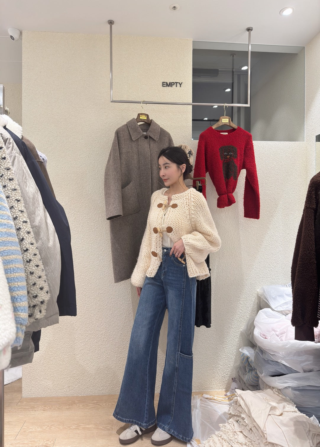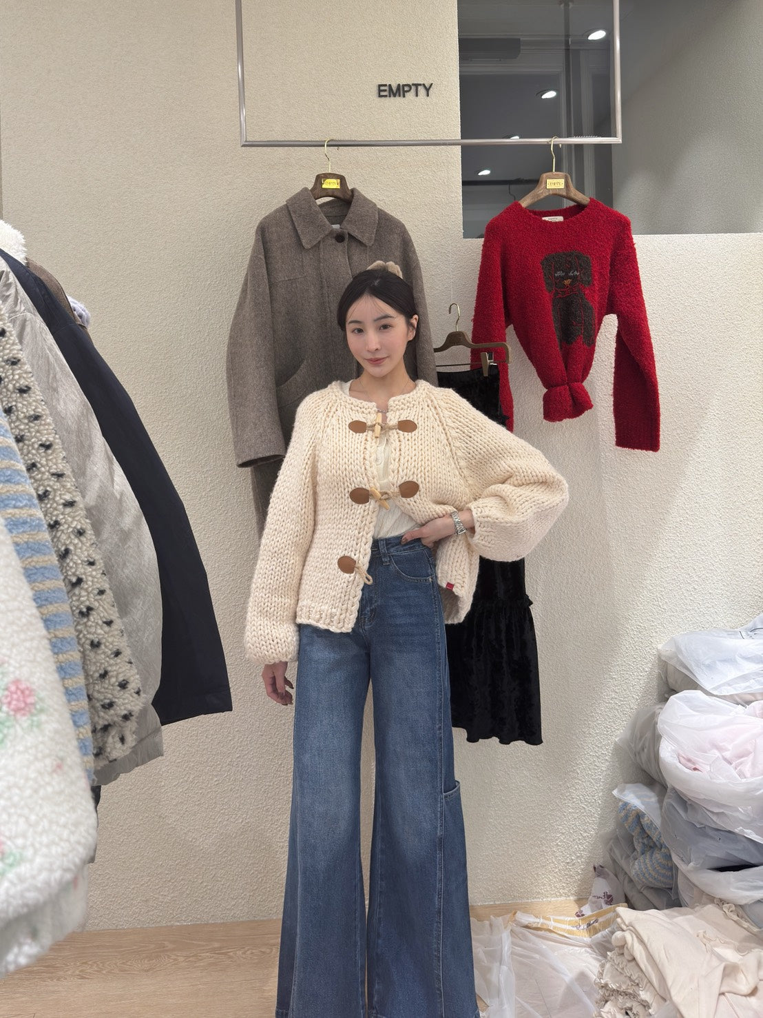 設計款口袋壓線落地褲
