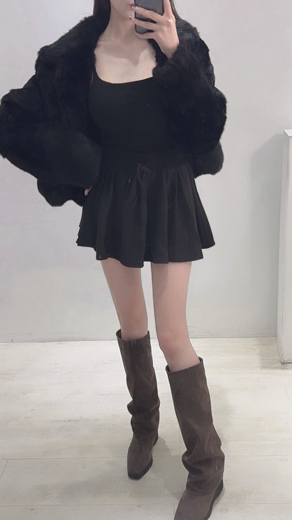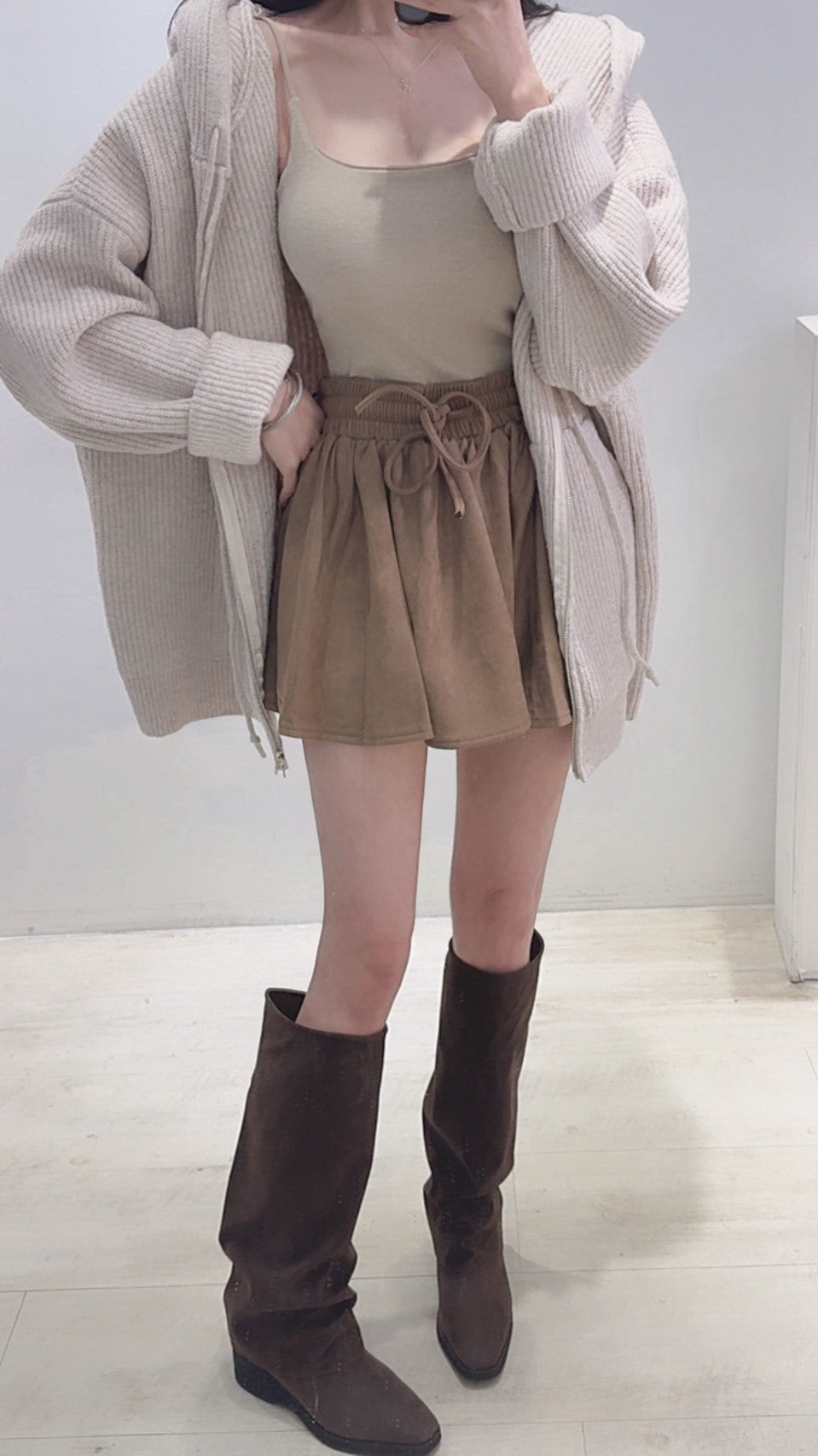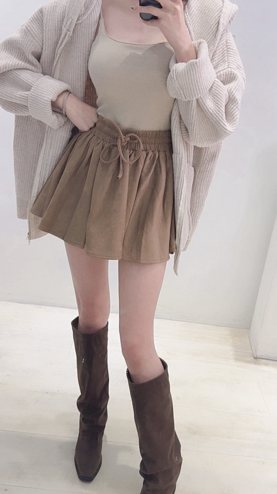 長腿視覺麂皮褲裙