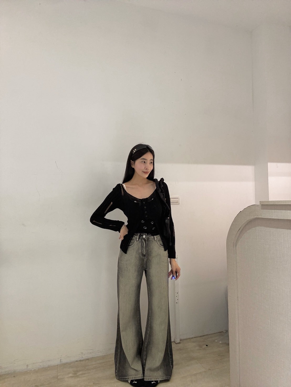 隕石灰直筒喇叭褲